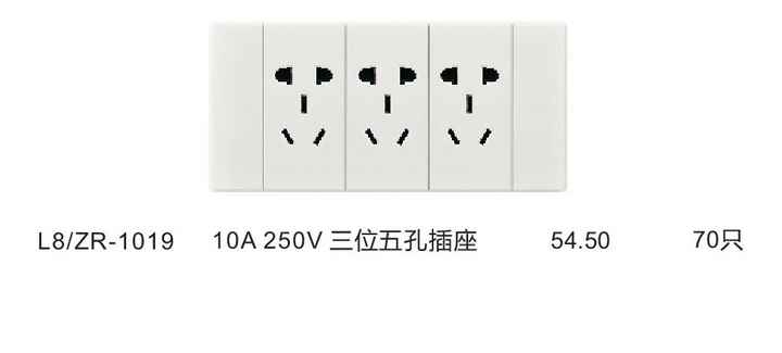 10A 250V三位五孔插座